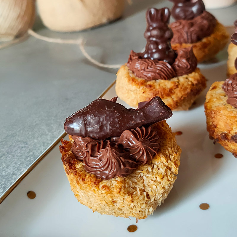 Avec une délicieuse ganache vegan au chocolat bio et équitable pour toujours plus de gourmandise On vous invite à découvrir la version classique de ces nids coco, ils sont tout aussi délicieux !